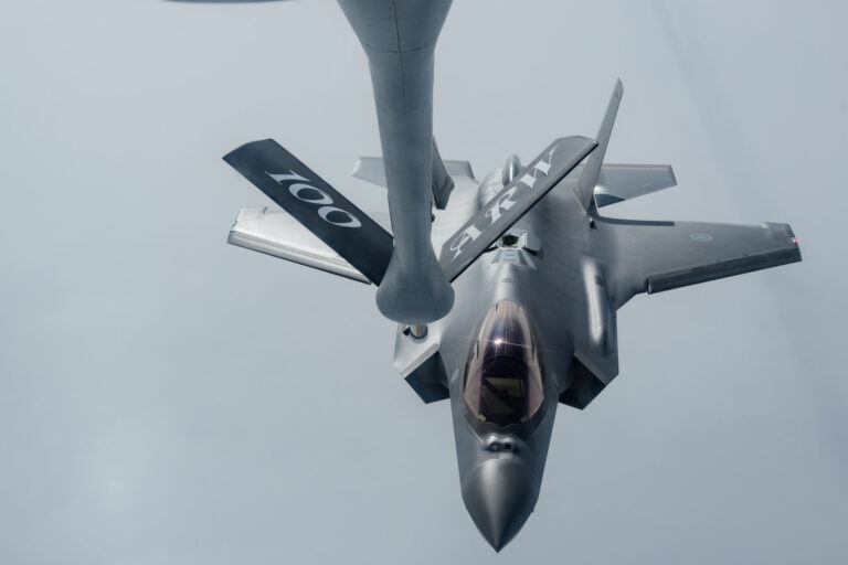 As a Norwegian F-35A Lightning II carefully approaches the rear of a Boeing KC-135R Stratotanker, tension fills the air. The highly focused boom operator aboard the tanker meticulously maneuvers the 30-foot boom toward the fighter jet’s receptacle. Precision is paramount in this intricate dance between two cutting-edge machines, and within moments, the words “You are taking gas” echo through the comms. Thousands of gallons of JP-8 jet fuel are delivered in minutes, ensuring the F-35A can stay airborne to complete its mission.